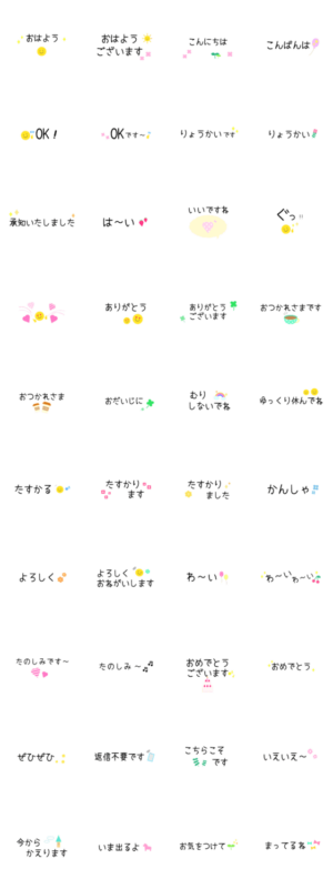 シンプルで使いやすい。春の花カラー/ニコちゃん/スマイル/敬語/丁寧語/ほんわか/かわいい/承知致しました/了解です/お大事にして下さい/おしゃれ/挨拶/ありがとう/社会人