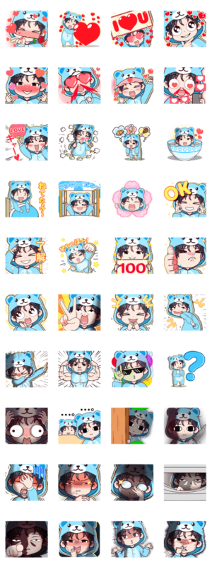 名前からしてうさぎのぱじゃまを着た男の子のスタンプであると思われるが、何をどう見ても熊のパジャマにしか見えない。うさぎ系男子と考えればつじつまは合わないことはないが……。キャラは全体的にかわいい。
