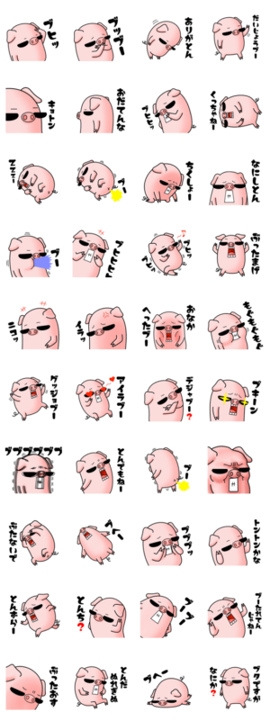 豚のキャラクターによる日常会話のスタンプです。shin1ro. より発売