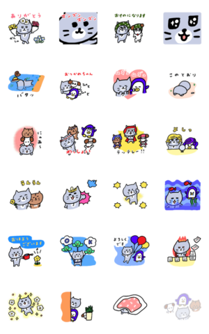 灰色キャットと仲間たちがアニメーションで、日常の表現を陽気にお伝えいたします。ねもとねも より発売