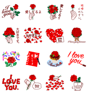 愛してる/大好き/好き/ラブラブ/花/薔薇1 スタンプ画像一覧