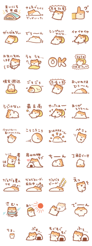 ハムスターすやはむのがんばらないスタンプ第2弾!さらにだるいとき、めんどくさいとき、人生に疲れたときになどにご利用ください_(:3 」∠)_