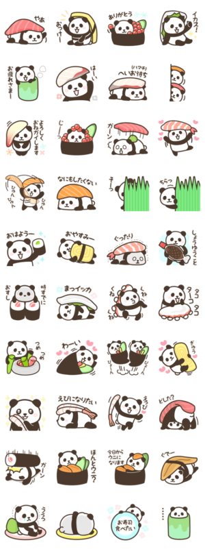 パンダと寿司のコラボが可愛い。ダジャレっぽくなっているのも面白い。
