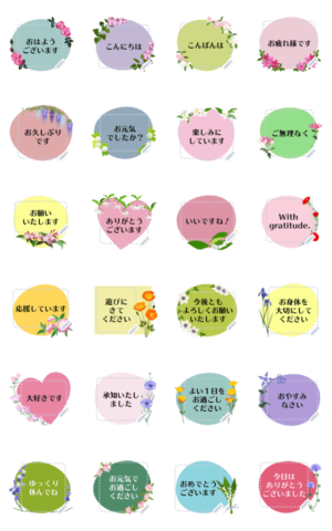 春色の花、フレームいろいろ。好きなテキストを自由に入力して、毎日の挨拶やおしゃべりにご利用ください。 現在この商品は一部のスマートフォン版LINE 10.3.0以上のトークルームでのみ使用できます。動作環境の最新情報はヘルプをご確認ください。acacia より発売