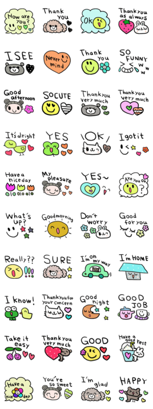 シンプルな日常会話スタンプです。英語スタンプnenerin より発売