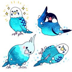 星空色の羽をもつホシゾラインコと仲間たちのキラキラかわいいスタンプ。翔太郎 より発売