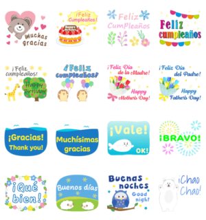 画面前面に動くスタンプが表示されるポップアップスタンプ☆スペイン語でのコミュニケーションに♩ 誕生日/母の日/父の日/あいさつ/英語/español/japonés/castellano