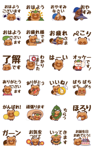 たぬきが可愛い上に、普段使う言葉が沢山で使いやすいです。誰に送っても好評。