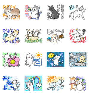 朝のあいさつに。猫/挨拶/おはよう/可愛い/日常/毎日/敬語/春/夏/秋/冬/天気/はれ/晴天/くもり/雨/梅雨/台風/強風/風/虹/にじ/猛暑/暑い/熱中症/雪/食事/ごはん/朝食/釣りsketchbook より発売