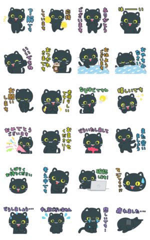 飛び出す!なめらかに動く黒ねこ♪ スタンプ画像一覧