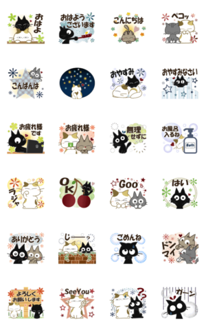黒ねこ&みけさんの毎日使いやすい動くスタンプです♪まちゃの部屋 より発売
