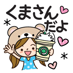 くまさんのかぶり物した大人かわいい女子の毎日使えるスタンプ♪親切で丁寧な言葉♪ KEN graphicKEN グラフィック より発売