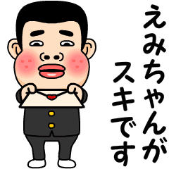 えみちゃん(エミチャン)が大好きな男子中学生。学ラン、昭和レトロ、ノスタルジー、ノスタルジック、青春、恋愛、初恋、告白。芋ジャージの名前スタンプの『くーが』作。くーが より発売