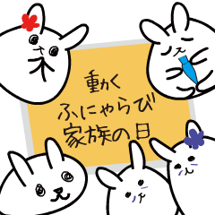 こどもの日、母の日、父の日、敬老の日のうさぎのふにゃらび家族アニメーションスタンプです。こどもの日、母の日、父の日、敬老の日に使えます。