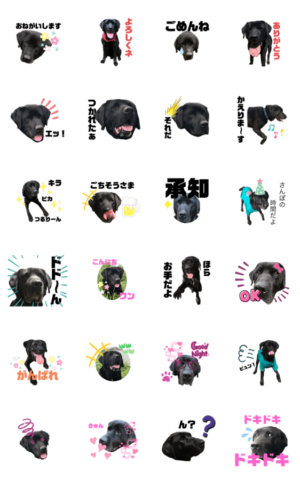 おじいちゃんYouTuber 黒ラブだいきち君の,一言スタンプがすべて解決してくれちゃう!送られた側もほっこり笑顔になっちゃうよ!間違いなし!ゴニョゴニョポプラ より発売