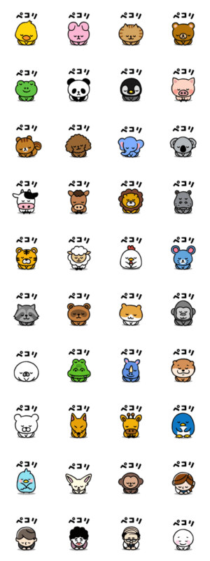お辞儀(土下座・ぺこり)の手書き風スタンプです。ありがとう・すみません・お礼などの気持ちを丁寧に伝えます。(動物・ねこ・リス・ぶた・くま・うさぎ・おじさん)ミミンヌモコ より発売