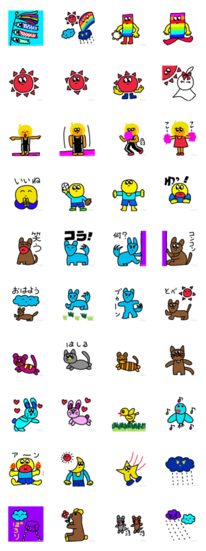 LINEスタンプメーカーでつくったスタンプです。動く晴れタンと仲間達。お天気キャラクターと動物、おねえさんが動きます。鯉のぼりが泳ぎます。
