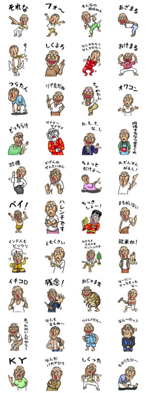 昭和のおじいさんが、死語を喋るスタンプのBIGスタンプ第5弾です。昭和の古き良き言葉、昭和レトロスタンプをどうぞ。