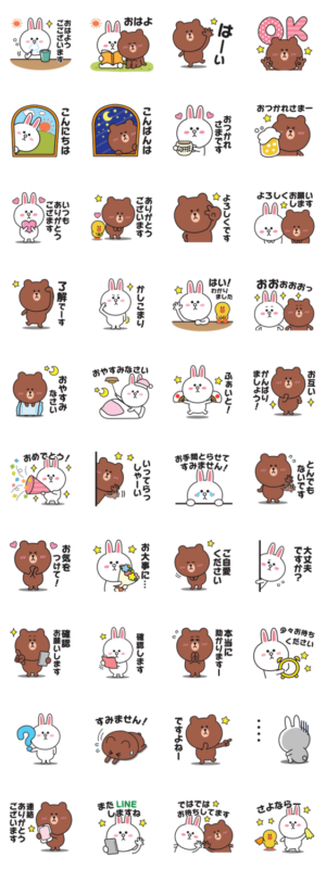 コニー&ブラウンの日常でよく使う言葉を集めたとっても使えるスタンプの第二弾です。挨拶や敬語、丁寧語があるので、家族や友達にも使えます。