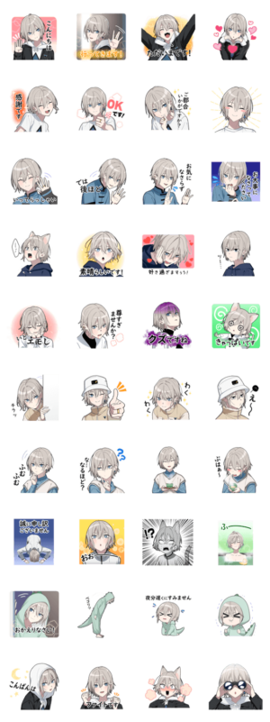 敬語を話すカッコよくて、カワイイ綺麗めな男の子のスタンプ第2弾☆ 挨拶など普段使いしやすい内容を丁寧な言葉で伝えてくれます。怪獣の着ぐるみパジャマ姿も注目です♪株式会社DK より発売