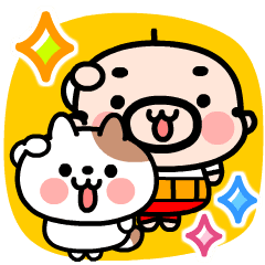 おやじ君と猫のネコ助の毎日使える定番の挨拶スタンプ。かわいい動きで気持ちを伝えるよ!前田ムサシ より発売
