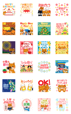 飛び出す!柴犬「ムサシ」 誕生日&お祝い スタンプ画像一覧