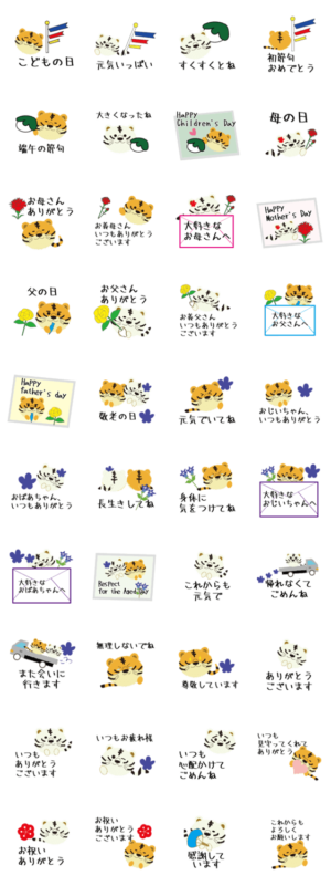 こどもの日母の日父の日敬老の日まめとら スタンプ画像一覧