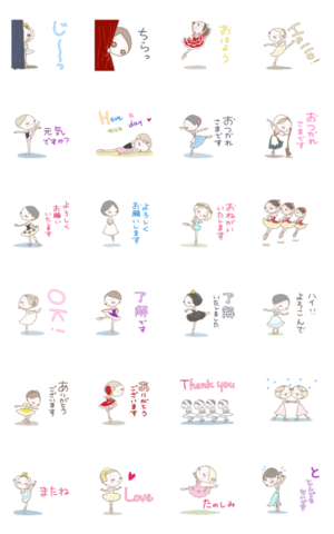 バレエガールズがかわいく踊る、動くスタンプミガクカナ より発売