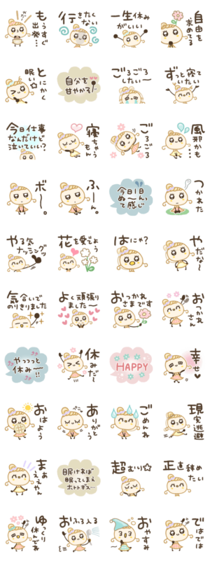 元気が出ない時も優しく明るくなれるスタンプです。まったり急がずしていいんだよって気分になりますね。