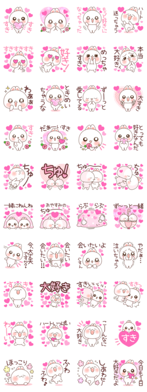 LOVEいっぱいな可愛いうさぎのラブラブスタンプ♡恋人(カップル)・友達・家族に愛を伝えよう♡挨拶や日常生活などいろんなシチュエーションに。
