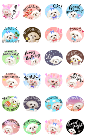 【マルチーズ】動く!ペットたち スタンプ画像一覧