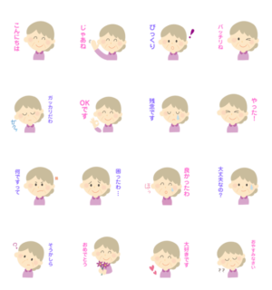 シニア女性の日常的なあいさつや返事をスタンプにしてみました。shintaro2754 より発売