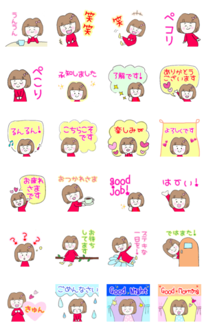 おかっぱ女の子の、シンプルで毎日使いやすい日常スタンプです♪/おかっぱ/ボブ/女の子/ショートヘア/丁寧hiromi より発売