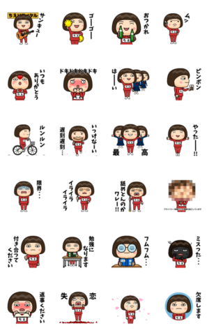 ちえ(チエ)が使う芋ジャージのスタンプ『中学生』。セーラー服、初恋、恋愛、失恋、片思い、勉強、不良、欠席、卒業、チョーク投げ、ピンポンダッシュ。