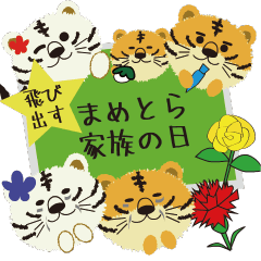 こどもの日、母の日、父の日、敬老の日に。まめとら家族飛び出すポップアップスタンプ。2022年(令和4年)の干支は寅年(トラ年)まめとらシリーズ
