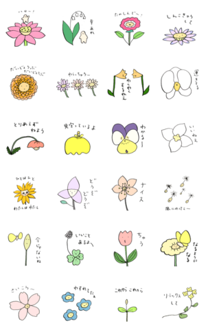 小さなお花たちがゆるく励ますスタンプです。齋藤槙 より発売