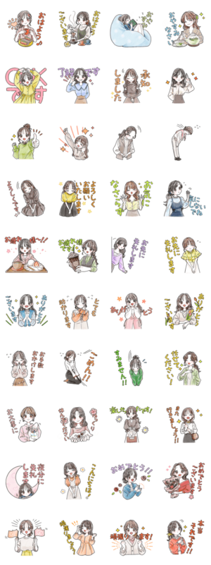 ふんわり可愛い女の子たちのスタンプ♪学校や会社の先輩、年上の彼氏さんに♪ オシャレ/お洒落/かわいい/カップル/ハート/敬語/部活/新社会人/ファッション/挨拶/日常/大人
