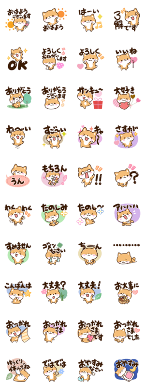 ちいさい柴犬の豆柴です。毎日よく使う言葉をシンプルな太字にしたイヌスタンプ。しばいぬ好きの方コーギーや秋田犬を飼っている方にぜひ。【かたこ】あいさつ/大人可愛いかたこ より発売