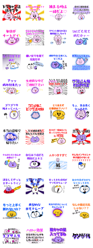 お豆腐メンタルで病みがちフレンズです。うさぎ/ねこ/シンプル/かわいい/煽り/仕事バブルガム より発売
