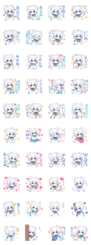 かわいらしい白くまの女の子のスタンプ。セーラー服であることもあり夏に使うと涼しげで良さそう。スタンプとしての使いやすさも上々。
