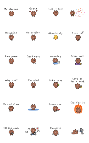 よく動く小さいブラウン。便利な省スペーススタンプ多め。今回は英語編です♪ ミニ/小さめ/シンプル/シュール/くま/熊/クマ/ラインキャラ/かわいい/可愛い/ゆるい/使える ※BROWN & FRIENDS をみんなでつくろう!キャンペーン参加スタンプですbearbear より発売