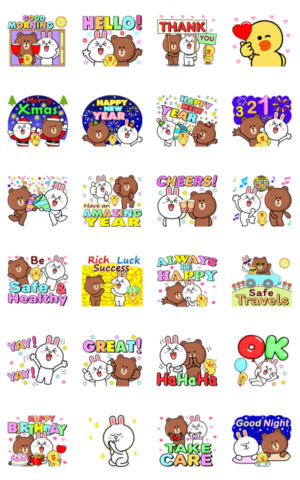 BROWN, CONY & SALLY animated fun Pop Ups for Happy Holidays Festival & everyday : Merry Christmas, Happy New Year (HNY), Best Wishes on Birthday (HBD). Cheers! Part of the "Make stickers with BROWN & FRIENDS" collection.