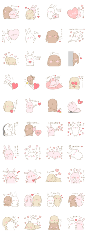 おもちみたいなほっぺのうさぎちゃん、『みるく』『いちご』『もか』『ここあ』♪恋人には勿論、お友達にも使える、愛がたくさんハートたくさんなスタンプセットです♪