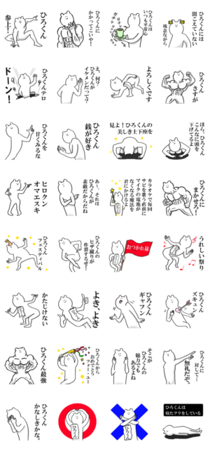 ひろくんのシュールなスタンプ。ひろし、ひろと、ひろき、ひろや、ひろあき、ひろとし、ひろのり、ひろひさ、ひろかず、ひろゆき、ひろまさ、ひろよし、ひろたか、など。Brody Machine より発売