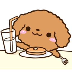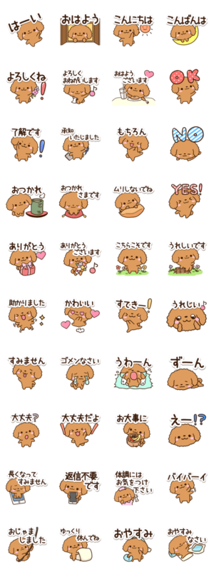 トイプードル(レッド)の犬スタンプ。基本的な言葉を集めたイヌスタンプです。ティーカップや、タイニー等のプードル系や、いぬが好きな方にぜひ。【かたこ】かたこ より発売