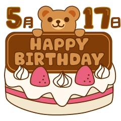 誕生日ケーキのチョコの裏から小さな熊がひょっこりぴこっと顔を出します。5月17日18日19日20日21日22日23日24日25日26日27日28日29日30日31日のハッピーバースデー。レアン より発売