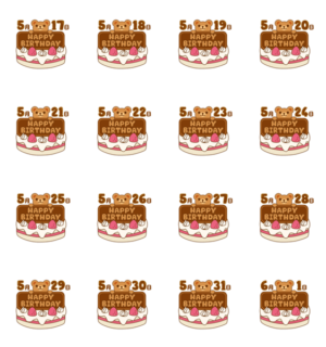 誕生日ケーキのチョコの裏から小さな熊がひょっこりぴこっと顔を出します。5月17日18日19日20日21日22日23日24日25日26日27日28日29日30日31日のハッピーバースデー。