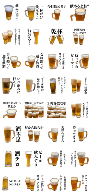 飲み会に誘うビール【酒・面白い・飲酒】 スタンプ画像一覧