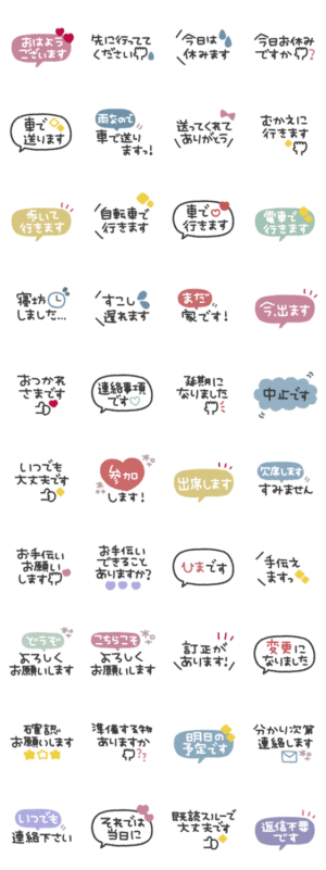 よく使うフレーズ、あいさつをスタンプにしました!これひとつで会話ができます! あいさつ/便利/使いやすい/ハート/癖字/女の子/敬語/手書き/カラフル/吹き出し/行事/連絡