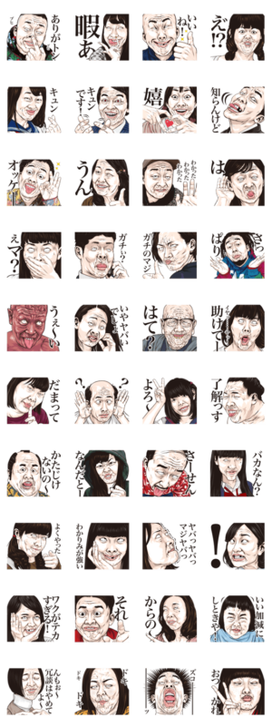 老若男女、様々な人達の白目やウザ顔やキモ顔で破壊力満点な攻撃ができる変顔スタンプの第6弾!キュンな使える言葉ネットスラングもたくさん!しろめ爆弾のスタンプ69作。スタンプ69 より発売